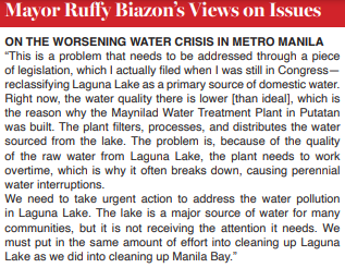 There is so much that Biazon wants to do for Muntinlupa. That is why, no matter how tiring his days get, he always finds ways to stay motivated and energized. His staff is amazed at how he is able to juggle so many tasks in a day. “I get an extra boost of energy knowing that even when problems come one after another, we are still able to find solutions,” he says. “Solving even one problem, whether it’s big or small, is a victory, every day,” he concludes.
